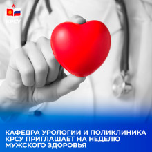 Кафедра урологии и поликлиника КРСУ приглашают всех сотрудников, преподавателей и членов их семей принять участие в Неделе мужского здоровья, которая пройдет с 10 по 15 ноября с 09:00 до 17:00 в Библиотеке главного корпуса КРСУ.