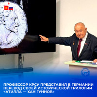 Профессор кафедры германской филологии Кыргызско-российского славянского университета, доктор филологических наук Амангельды Бекбалаев представил в Германии переведённую на немецкий язык часть своей историко-художественной трилогии «Атилла — хан гуннов