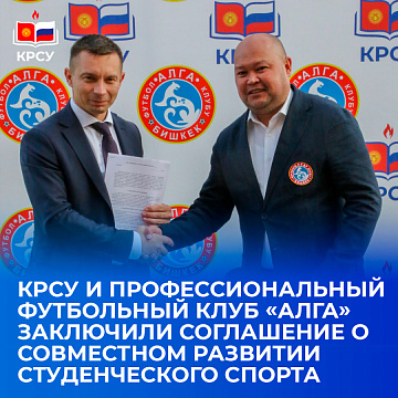 В КРСУ состоялось подписание соглашения о сотрудничестве между КРСУ и Профессиональным ФК "Алга" 9 октября 2025 Сотрудничество