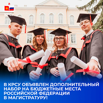 В КРСУ объявлен дополнительный набор на бюджетные места Российской Федерации в магистратуру! 26 августа 2025 Магистратура