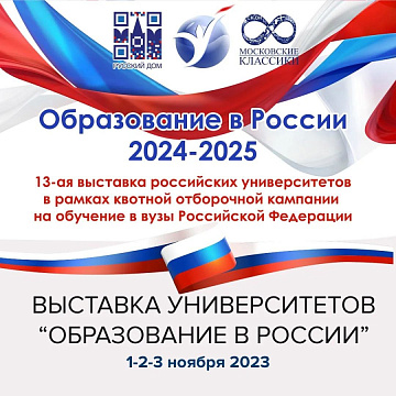 С 1 по 3 ноября в КРСУ пройдет выставка российских университетов «Образование в России – 2024-2025» 23 октября 2023 Объявление