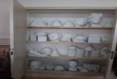 Equipment: easels, chairs, stands for still lifes, spotlights, tripods for palettes, art fund (including plaster figures).