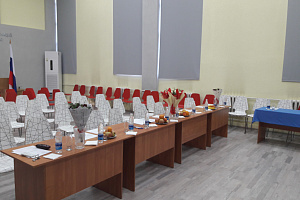 Located on the second floor of building №10. The hall has an area of 198 sqm, has 80 seats, meets health protection and fire safety requirements. The assembly hall is equipped with modern musical equipment with a set of microphones and powerful speakers, a lighting system, a multimedia projector, a screen, and a large TV.