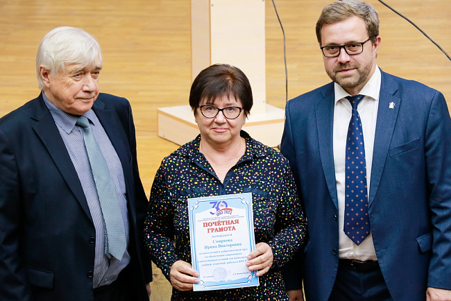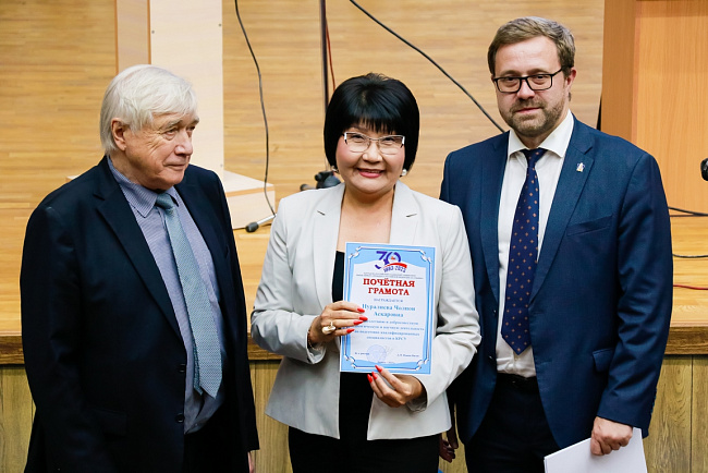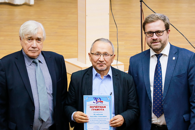 More than 30 teachers and employees of KRSU were awarded Certificates of Honor «For many years of conscientious pedagogical and scientific activity in training qualified specialists» and «For many years of conscientious work in providing modern and high-quality conditions for the performance of educational and scientific work».