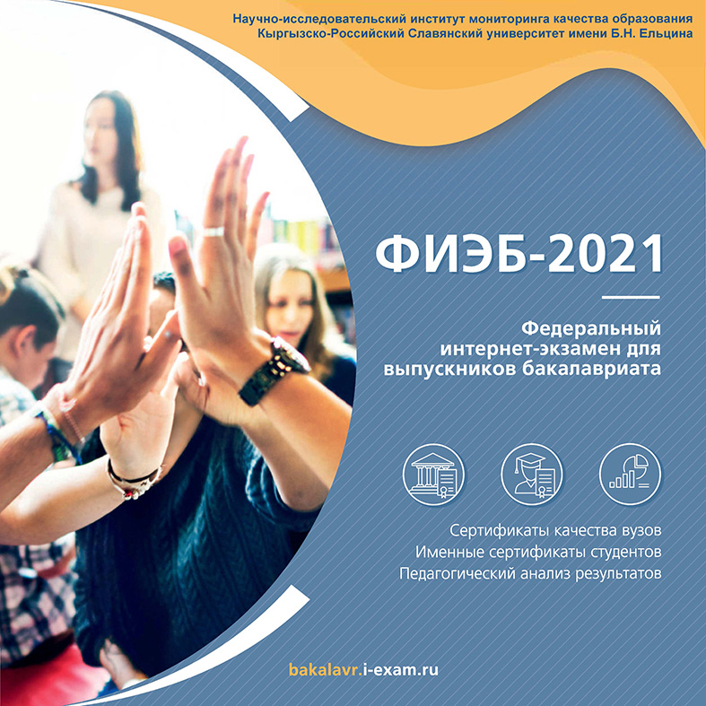 The Kyrgyz-Russian Slavic University named after B. Yeltsin is included in the list of universities that are the base platforms intended for conducting the Federal Internet Exam for undergraduate graduates (FIEB). The organizer of the exam is the Research Institute for Monitoring the Quality of Education.