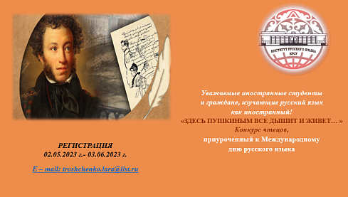 Institute of Russian Language named after. A. Orusbaev Kyrgyz-Russian Slavic University invites you to take part in conteste readers «Here Pushkin breathes and lives... <TAG1>, timed to coincide with the International dnude of the Russian language.
