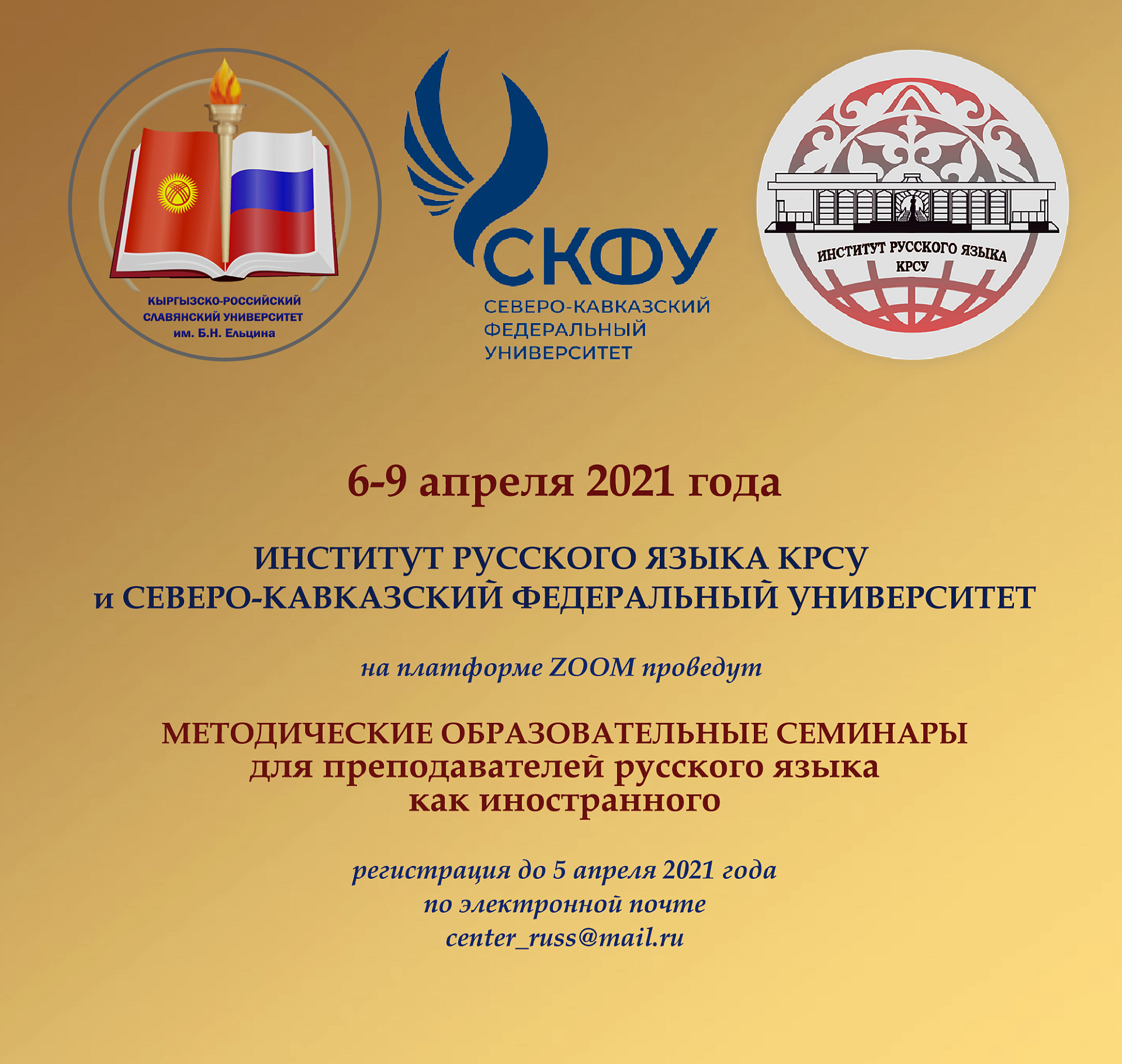 From April 6 to April 9, 2021, the Institute of Russian Language of the Kyrgyz-Russian Slavic University named after the first President of the Russian Federation B.N. Yeltsin and the North Caucasus Federal University (Russian Federation, Stavropol), as part of the implementation of measures to improve the level of professional competencies of teachers of Russian as a foreign language and international cooperation programs in the field of educational technologies, will conduct training seminars aimed at improving the methodological skills of teachers of Russian as a foreign language.