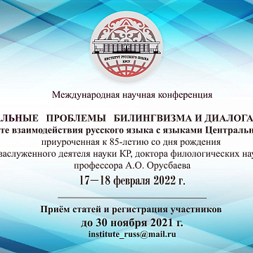International conference dedicated to the Russian language in the bilingual space of Kyrgyzstan and Central Asia (May 16-17, 2023) 9 february 2023 Conferences