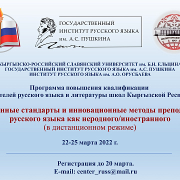 Advanced training program for teachers of Russian language and literature of schools of the Kyrgyz Republic (March 22-25, 2022) 9 martha 2022 Announcement