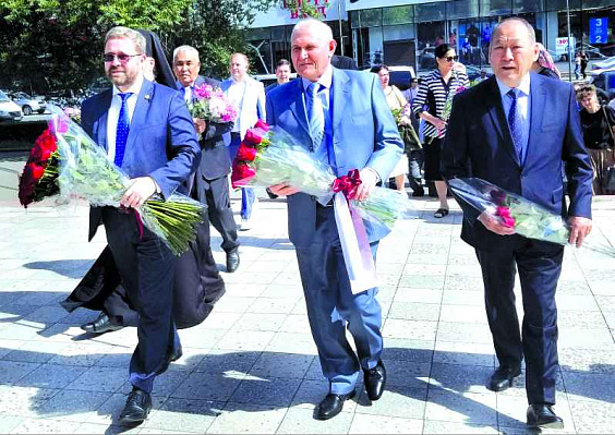 Participants of the great Pushkin holiday gathered at the monument to the poet near the main building of the university, where an extensive program of anniversary celebrations started in the early morning of June 6. The celebration began with the laying of flowers at the monument to A. Pushkin, who, by the way, also celebrated his anniversary — 25 years since its opening. Then all participants moved to the large assembly hall of the university, where the official opening of the Pushkin Festival took place, which was attended by students and teachers of KRSU, other universities in the capital and guests of the anniversary event from other regions and CIS countries.