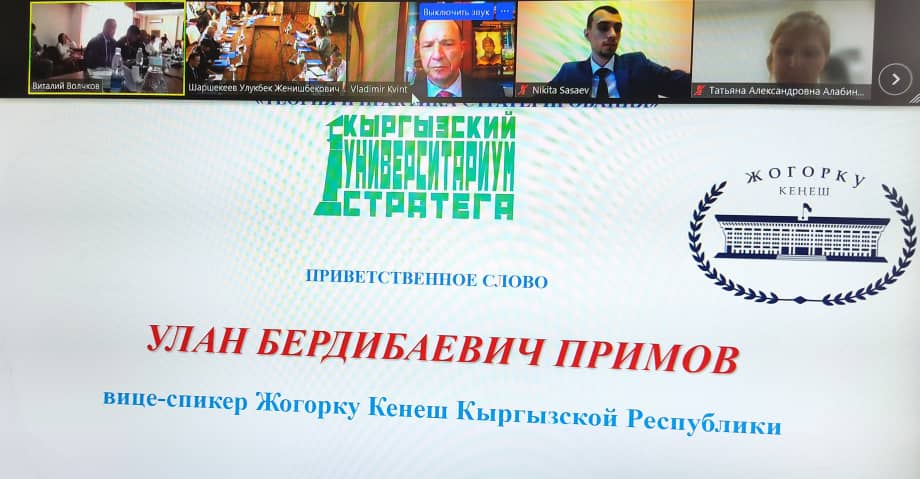 В Конференции приняли участие академик Национальной Академии наук Кыргызской Республики Владимир Иванович Нифадьев; вице-спикер Жогорку Кенеш Кыргызской Республики Улан Бердибаевич Примов; д-р. ист. наук, Министр образования и науки Кыргызской Республики Алмазбек Бейшеналиевич Бейшеналиев; эксперт отдела мониторинга и анализа реформ Администрации Президента Кыргызской Республики Эрлан Пархадович Бакиров; председатель Национальной комиссии по государственному языку Каныбек Осмоналиев; д-р. экон. наук, профессор, директор Национального института стратегических исследований Кыргызской Республики Рустам Эмилжанович Асизбаев; канд. экон. наук, атташе по образованию и науке Посольства Российской Федерации в Кыргызской Республике, представитель министерства науки и высшего образования Российской Федерации Роберт Геннадьевич Фёдоров; д-р. экон. наук, профессор кафедры экономической и финансовой стратегии МШЭ МГУ, ведущий научный сотрудник ЦСИ ИМИСС МГУ Ирина Викторовна Новикова, канд. экон. наук, доцент кафедры экономической и финансовой стратегии МШЭ МГУ Никита Игоревич Сасаев.