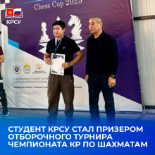Жаныбеков Элхан, студент группы ПГС-2-25 и капитан сборной КРСУ по шахматам, продемонстрировал уверенную игру, стратегическое мышление и отличную подготовку. По итогам соревнований Элхан занял III место в своей возрастной категории и успешно прошёл отбор на Чемпионат Кыргызской Республики по шахматам 2026 года!