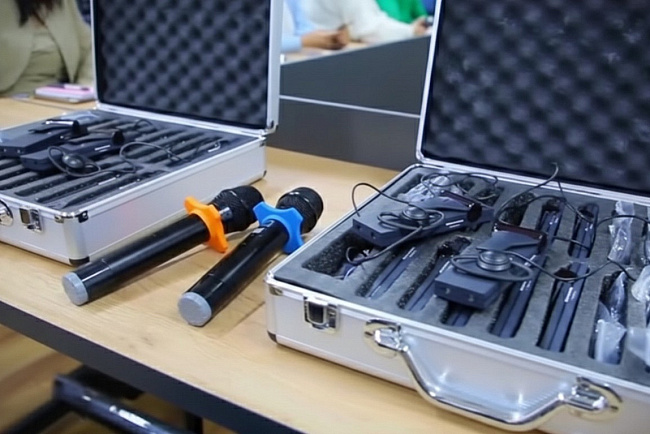 Лингвистическая лаборатория (021 ауд.) предназначена для проведения практических занятий, включая занятия по синхронному и последовательному переводу. Аудитория оснащена специализированным оборудованием для синхронного перевода, лингафонными системами и компьютерной техникой, что позволяет отрабатывать профессиональные переводческие навыки.
