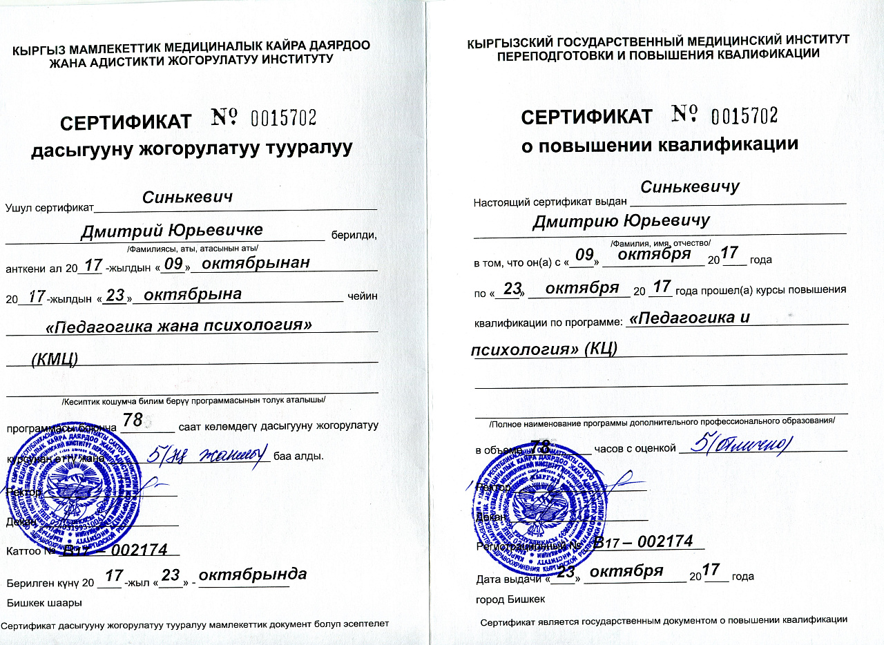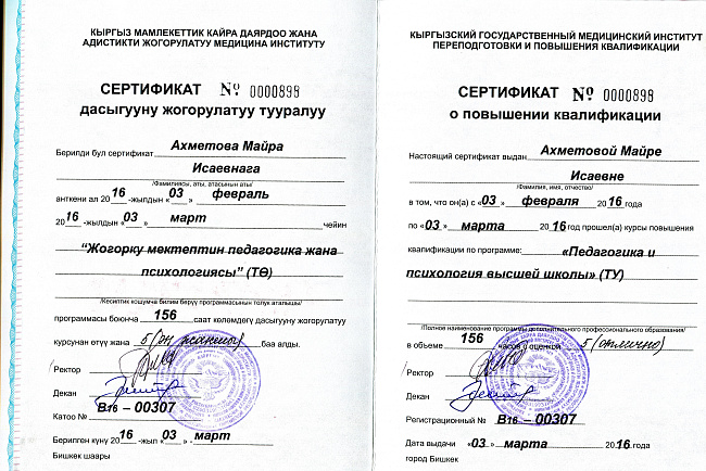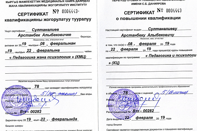 Сертификаты и дипломы студентов