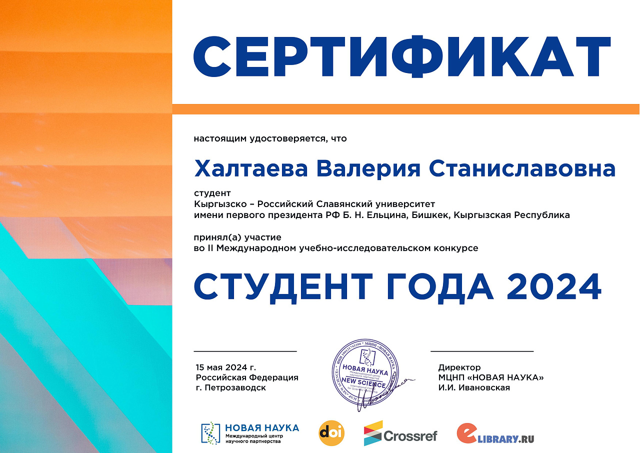 Наша студентка группы ЕПМ-1-20 Халтаева В.С. стала победительницей II Международного учебно-исследовательского конкурса «СТУДЕНТ ГОДА 2024» (НИК-393). Наши искренние поздравления! Желаем Валерии дальнейших успехов и новых достижений!