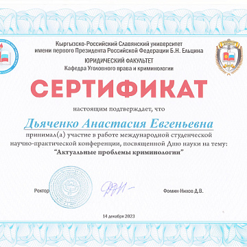 Международная студенческая научно-практическая конференция, посвященная Дню науки на тему: «Актуальные проблемы криминологии»