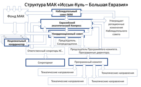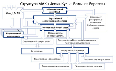 Высшим руководящим органом МАК является Наблюдательный совет в составе заинтересованных организаций-членов ЕИАК, которые полномочны кооптировать на ротационной основе в состав членов МАК - представителей ведущих евразийских государственных и негосударственных аналитических институтов (центров) стран Большой Евразии.