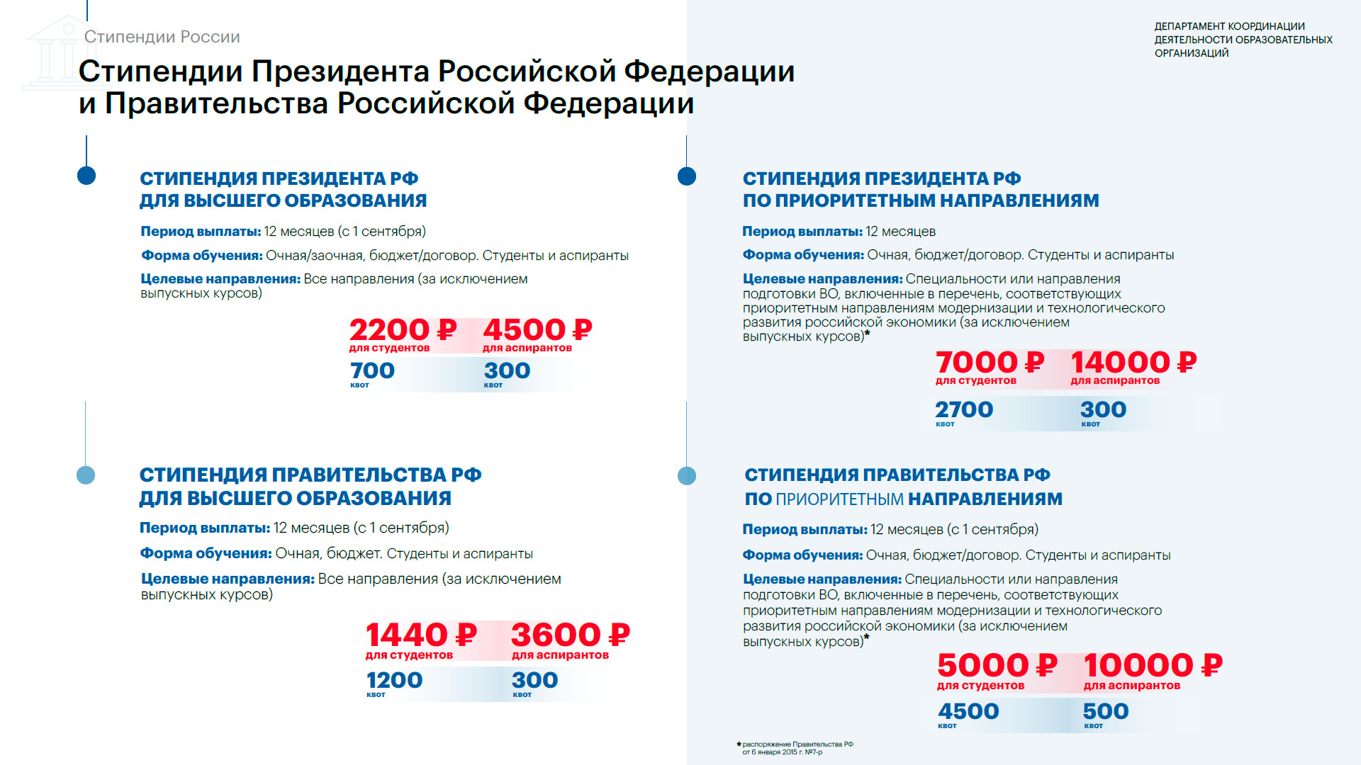 - Стипендии Правительства Российской Федерации по приоритетным направлениям для студентов
