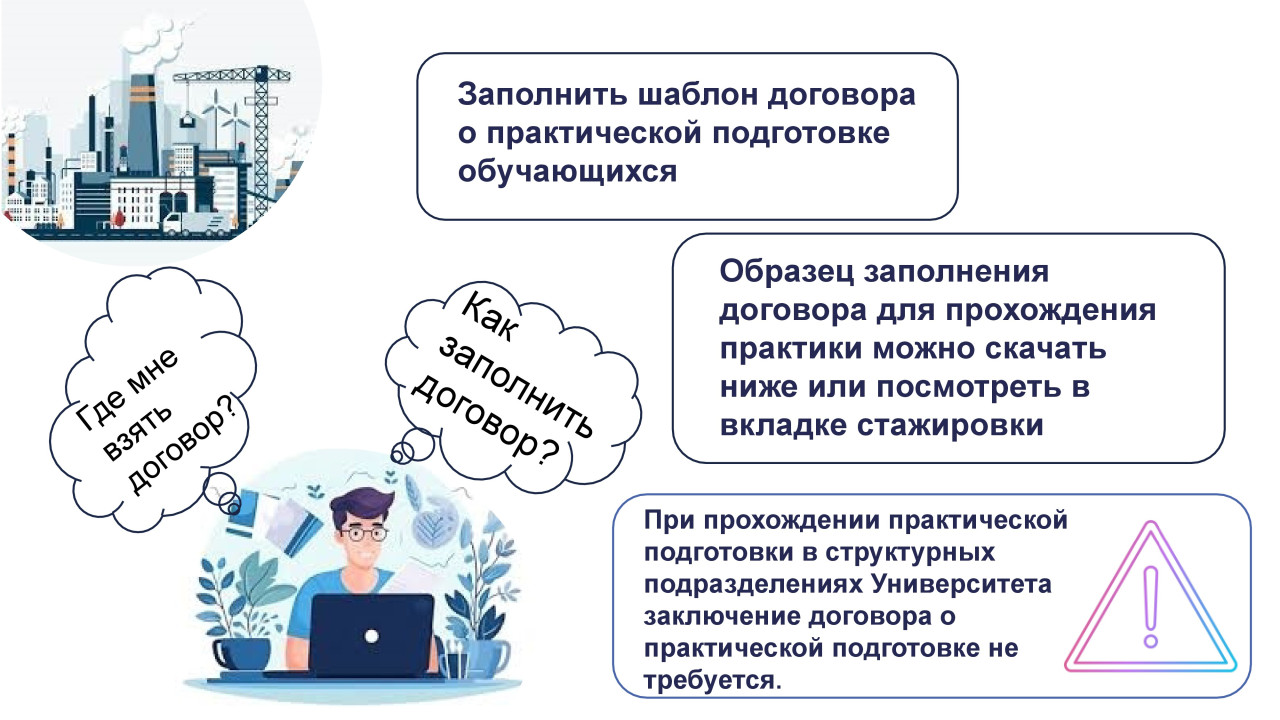 На каждой кафедре есть ответственные за организацию практики студентов, которые могут помочь разобраться с требованиями к отчётной документации и подготовится к успешной сдаче практики.