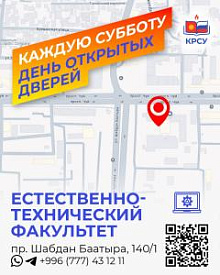Уважаемые абитуриенты и родители! Теперь каждую субботу вы можете посетить факультеты Кыргызско-Российского Славянского университета и Колледж КРСУ в рамках Дня открытых дверей.