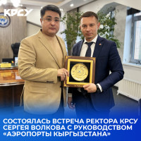 Ректор Кыргызско-Российского Славянского университета Сергей Волков провёл рабочую встречу с командой акционерного общества «Аэропорты Кыргызстана» во главе с председателем правления Манасбеком Самидиновым.