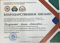 17-18апреля 2025 г. состоялась 62-я Международная научно-практическая конференция, посвященная 117-летию доктора наук, профессора Зафара Игембердиева «Дни науки КГМА 2025». В качестве члена жюри в секционном заседании «Вопросы фундаментальной медицины» приняла участие зав. кафедрой гистологии, эмбриологии, цитологии Калугина О.П. От организаторов конференции Калугина О.П. получила Благодарственное письмо.