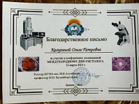 14 марта 2025 года 14 марта 2025 года состоялась конференция «Международный день гистолога» КГМА-КРСУ. В конференции от КРСУ приняли участие иностранные студенты 1 курса , научными руководителями которых являлись зав. кафедрой гистологии, эмбриологии, цитологии Калугина О.П., преподаватель Туршиди К.В., преподаватель Акылбекова А.К. Всем участникам конференции были вручены дипломы, научным руководителям были вручены Благоларственные письма.
