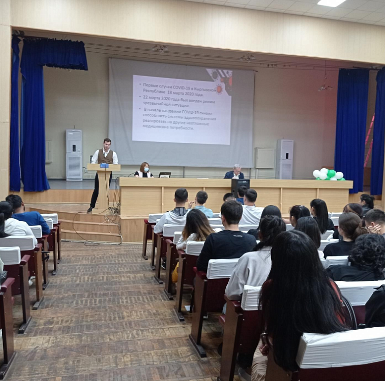 8 апреля 2022 года на кафедре общественного здоровья и здравоохранения КРСУ прошла конференция посвященная «Всемирному дню здоровья», в которой участвовали сотрудники кафедры и студенты 1 курса ЛД 1 поток, 4 курса ЛД 2 поток, иностранные студенты 4 курса ЛДи. Вниманию слушателей были представлены доклады студентов: