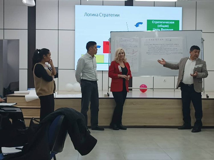 15-17 февраля 2024 г. представители национальных ВУЗов КР прошли тренинги по методологии и инструментам стратегического анализа и планирования, организованные Национальным офисом Эразмус+ при поддержке Министерства образования и науки Кыргызской Республики. В процессе обсуждения стратегических задач образовательной системы страны принял участие Расул Абазбек уулу, заместитель министра Министерства образования и науки Кыргызской Республики. По итогам тренингов, зав. кафедрой менеджмента Романович О.Г. и доцент Островская Е.С. получили сертификаты.