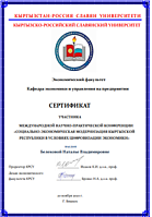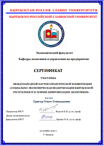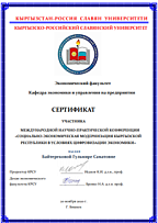 20 ноября 2020 года была проведена Научно-практическая конференция «Социально-экономическая модернизация Кыргызской Республики в условиях цифровизации экономики». На конференции, организованной кафедрой «Экономики и управления на предприятии» Кыргызско-Российского Славянского университета, приняли активное участие ученые и магистранты Кыргызской Республики и Российской Федерации.