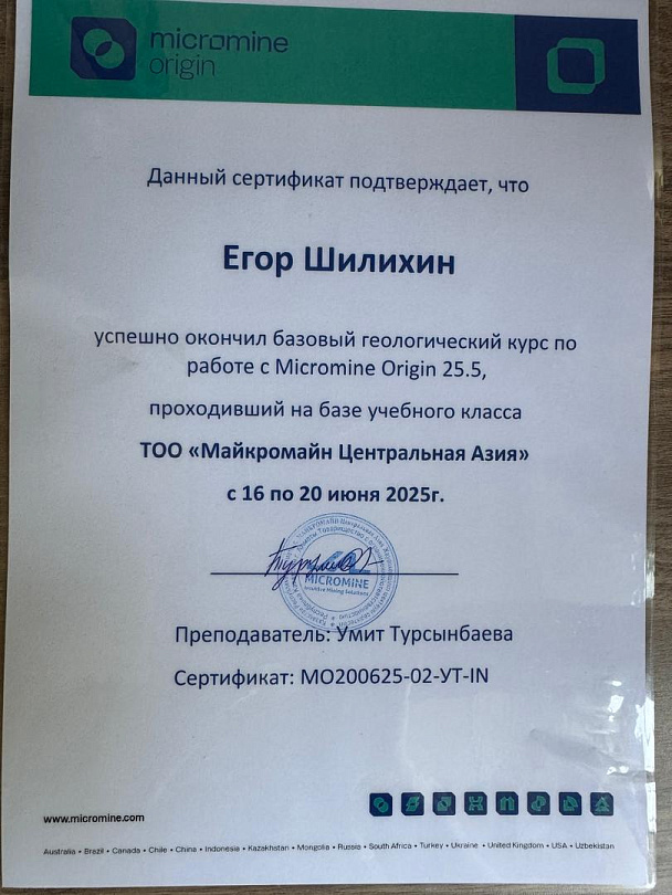 Пихтовникова А.С. и Шилихин Е.В. приняли участие в базовом геологическом курсе по работе с Micromine Origin 25.5 проходивший на базе учебного класса ТОО "Майкромайн Центральная Азия" с 16 по 20 июня 2025 г.
