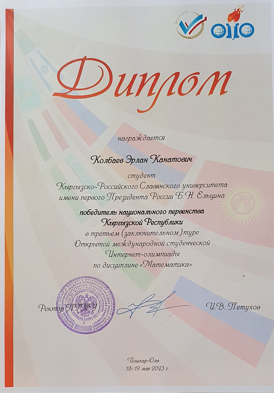 Колбаев Эрлан награжден дипломом Национального первенства и сертификатом международного образца.