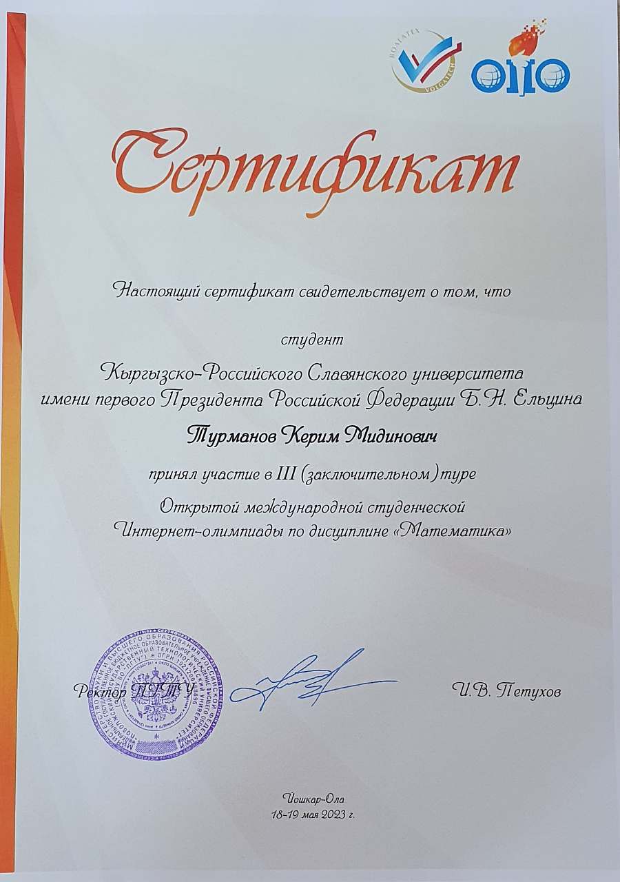 Турманов Керим и Магай Владислав награждены сертификатами международного образца.