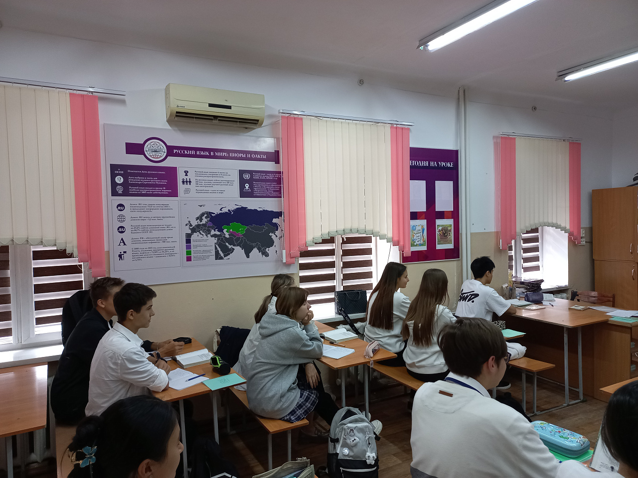 4 октября 2024 года в школе КРСУ прошла презентация обновленного кабинета русского языка. Поддержку в процессе обновления оказали российские пограничники. Сам процесс заключался в повышении информативности кабинета. Для этого при его оформлении были использованы разработки проекта «Кабинет русского языка и литературы для школ Кыргызстана», авторами которого являются заместитель директора института русского языка Ольга Сумарокова и директор центра историко-культурного наследия Леонида Сумарокова. Основой проекта являются тематические стенды, отражающие национально-культурные и исторические реалии функционирования русского языка в мире и Кыргызстане. В Кыргызской Республике проект успешно реализован в 18 школах и военном институте Вооруженных Сил Кыргызстана. По отзывам педагогов, оформление кабинетов указанными стендами служит эффективным инструментом достижения практических, общеобразовательных и развивающих целей.
