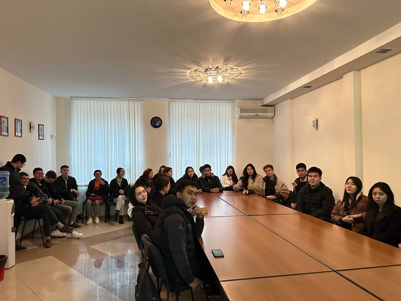 Наши студенты 3 и 4 курсов с доцентом кафедры Рахманалиевой А.А. сегодня посетили День открытых дверей, прошедший в Кыргызской Фондовой Бирже (КФБ). Ребятам рассказали о тенденциях фондового рынка Кыргызстана и деятельности КФБ.