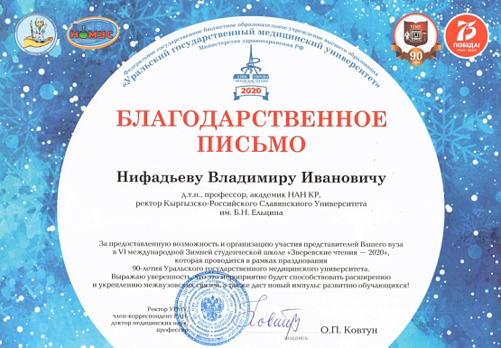 Участники школы привезли с собой в Бишкек, помимо дипломов и презентов, текст договора о сотрудничестве между УГМУ и КРСУ, а также благодарственное письмо на имя ректора КРСУ Владимира Нифадьева.