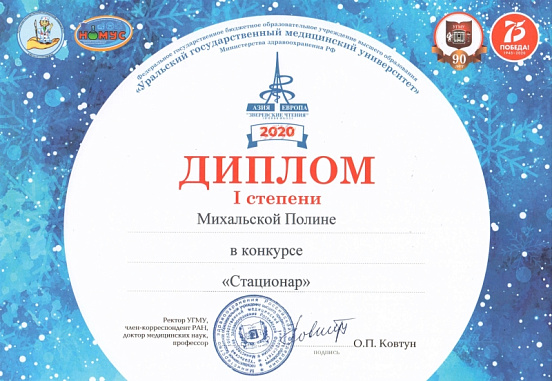 Теоретическая часть «Зверевских чтений» представляла собой конференцию с докладами участников и лекционный курс, который прочитали опытные специалисты. От нашего вуза с научными докладами выступили студентки 6 курса специальности «Педиатрия» Азира Усенова (диплом 2-й степени) и Полина Михальская (диплом 3-й степени).