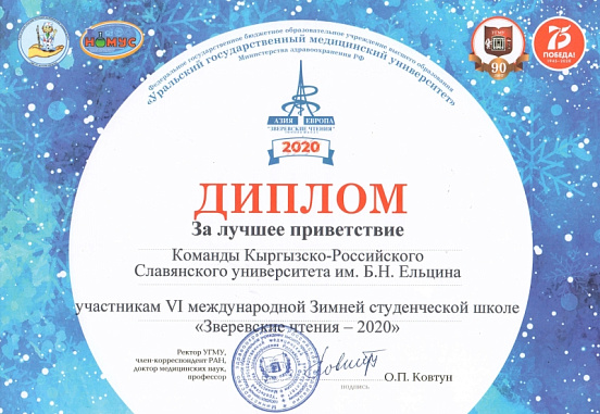 Студенческая жизнь Поездки Выступления Медицина 2020 г.: 24 диплома «Зверевских чтений» – у студентов КРСУ!