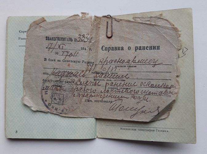 В ноябре 1943 года под Курской дугой красноармеец Каджиев был тяжело ранен – слепое ранение правой руки осколком мины, а после года лечения, как инвалид войны, он был демобилизован.