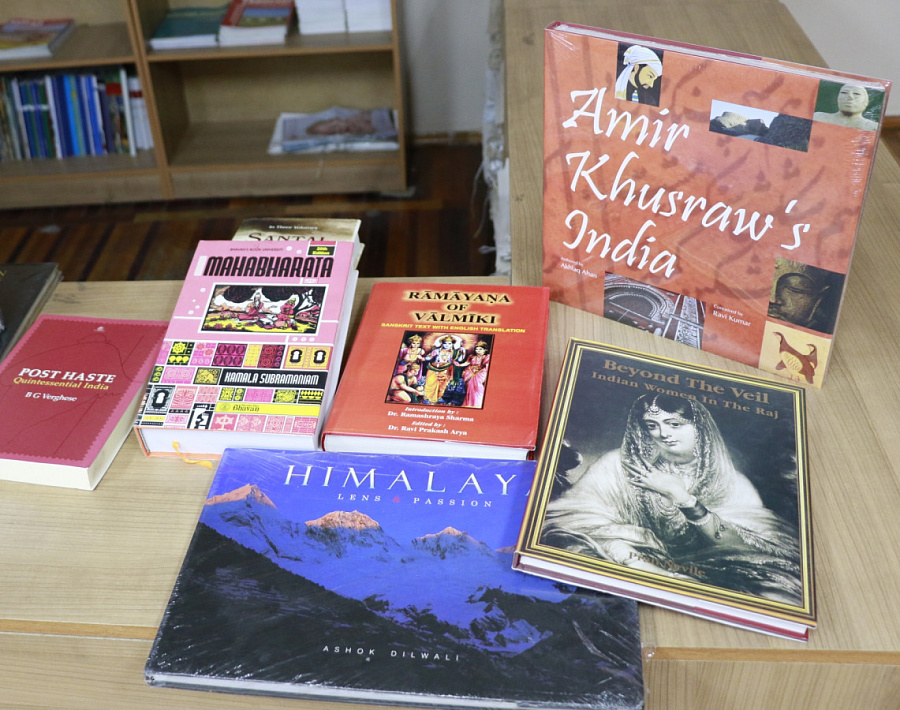Всего библиотеку нового Центра благодаря Посольству Индии пополнят порядка 400 наименований – это книги об искусстве, культуре, науке Индии, выдающихся личностях и др.