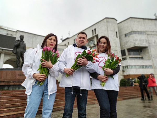 6 марта 2020 года волонтеры из Бишкека подарили женщинам тюльпаны у памятника Чингизу Айтматову и поздравили их с Международным женским днем в рамках акции #MakeHerSmile, создав весеннее настроение в холодную погоду.