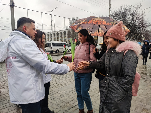 Четвертый год подряд волонтеры из 35 стран мира дарят цветы, подарки и сувениры и выражают признательность представительницам прекрасного пола.