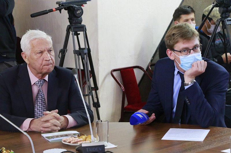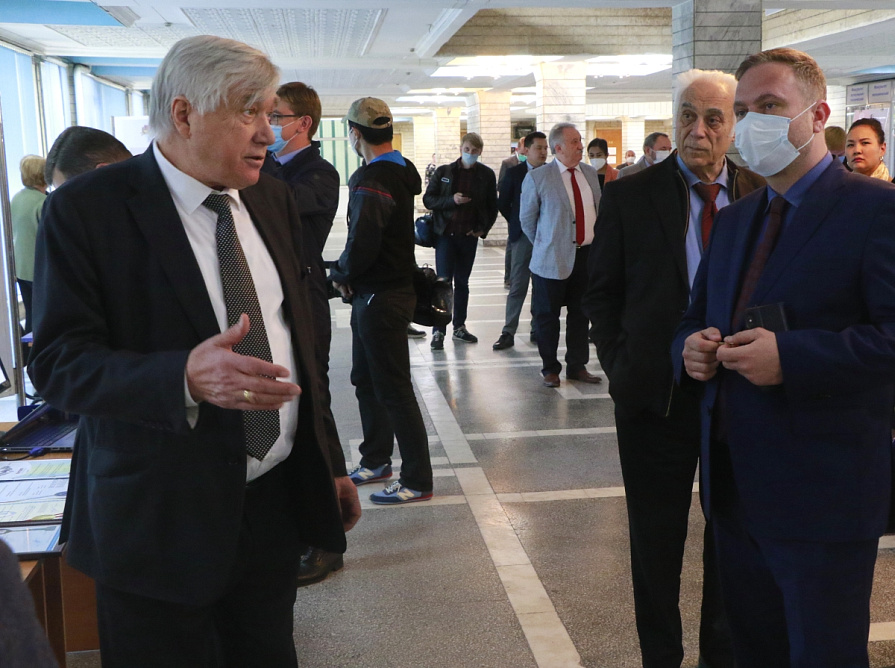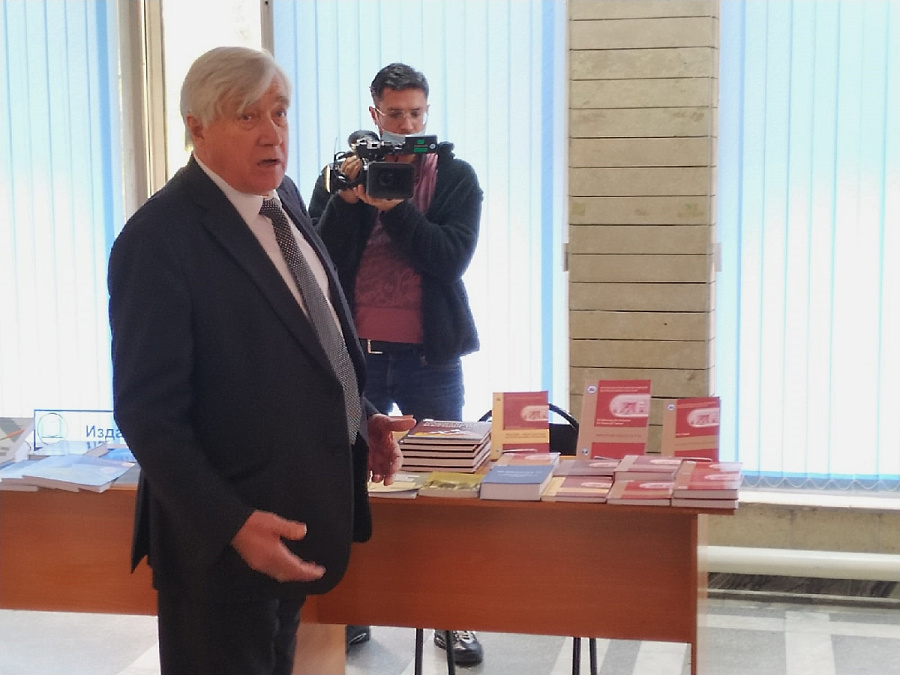 В фойе университета на втором этаже развернулись две выставки – «Фронтовые дороги народных депутатов» и «В кыргызский язык я вошел нарочно» (к 130-летию советского тюрколога, лексикографа, автора «Кыргызско-руского словаря» Константина Кузьмича Юдахина) – о них гостям рассказал проректор по информации и связи с общественностью КРСУ Леонид Сумароков.