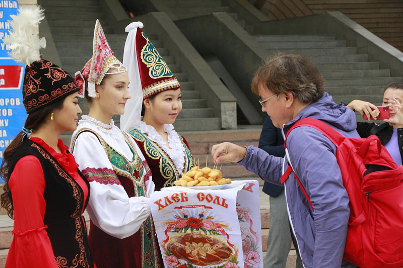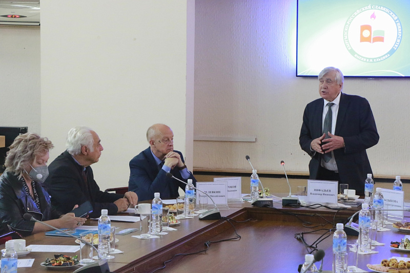 Ректор, академик Владимир Нифадьев и сотрудники КРСУ поведали собравшимся о миссии вуза и его студентах, мерах по сохранению и продвижению русского языка среди молодого поколения, а также мероприятиях и акциях, приуроченных к 75-летию Победы в Великой Отечественной войне и реализованных университетом в этом году.