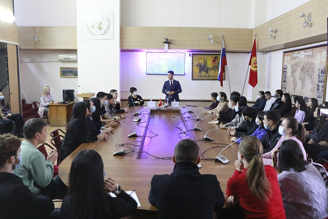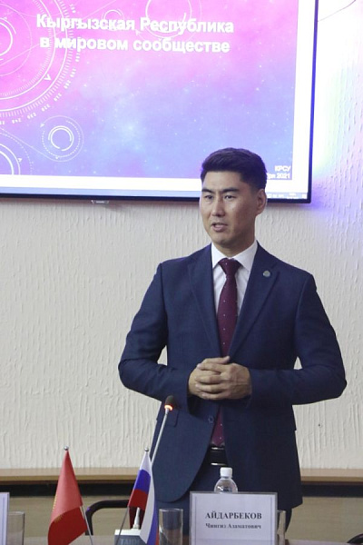 20 декабря в конференц-зале главного корпуса КРСУ прошла лекция депутата Жогорку Кенеша, экс-министра иностранных дел КР, кандидата юридических наук Чингиза Айдарбекова на тему: «Кыргызстан в глобальных процессах», слушателями которой стали студенты 2-3 курсов юридического и экономического факультетов, а также студенты-международники.