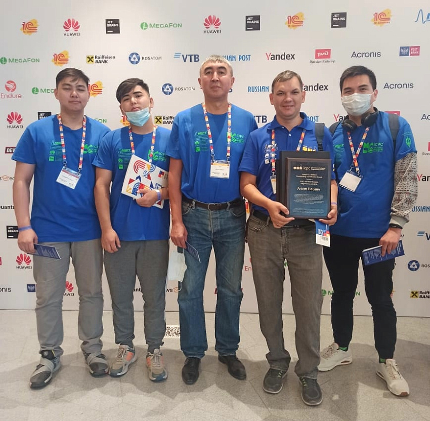 На чемпионат 2021 года были приглашены и награждены региональные лидеры, в том числе и тренер команды КРСУ, старший преподаватель Артем Беляев. Он вошел в состав региональной делегации Северной Евразии. Почетной награды удостоился профессор-консультант КРСУ Геннадий Александрович Десятков. Именно он стоял у истоков олимпиадного движения в Кыргызстане. Благодаря успехам нашей команды в соревнованиях (в 2004 году команда КРСУ заняла 15-е место в мировом рейтинге), организаторами было принято решение об организации отдельной Кыргызстанской четвертьфинальной группы соревнований, и наш вуз стал основной площадкой по проведению четвертьфинальных соревнований ICPC. Г.А. Десятков возглавлял региональный Кыргызстанский турнир с 2004 по 2020 год. В настоящее время региональным директором стал Артем Беляев.