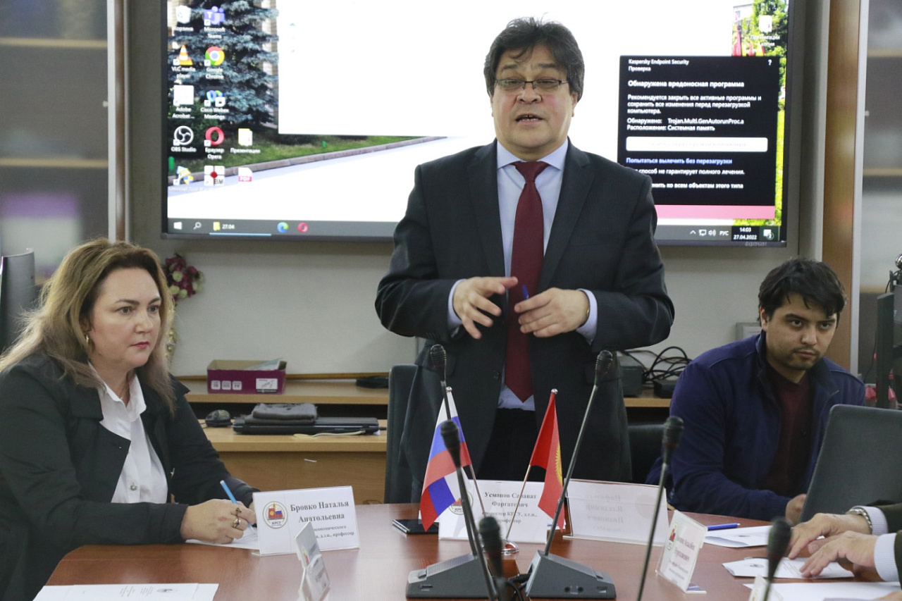 С приветственным словом к собравшимся обратились представители КРСУ – проректор по учебной работе, профессор Салават Усманов, декан экономического факультета, профессор Наталья Бровко и заведующий кафедрой национальной экономики и регионального развития, профессор Асылбек Аюпов (модератор конференции).