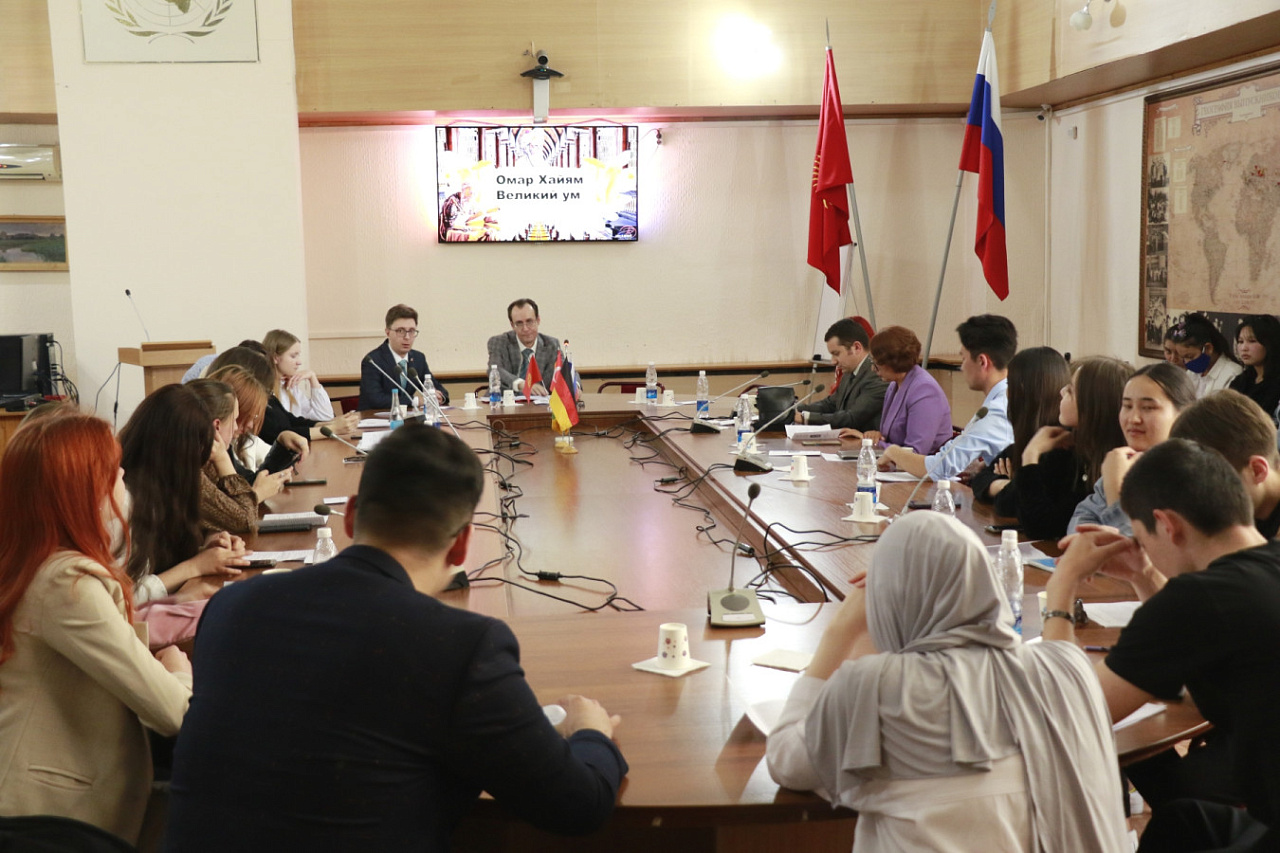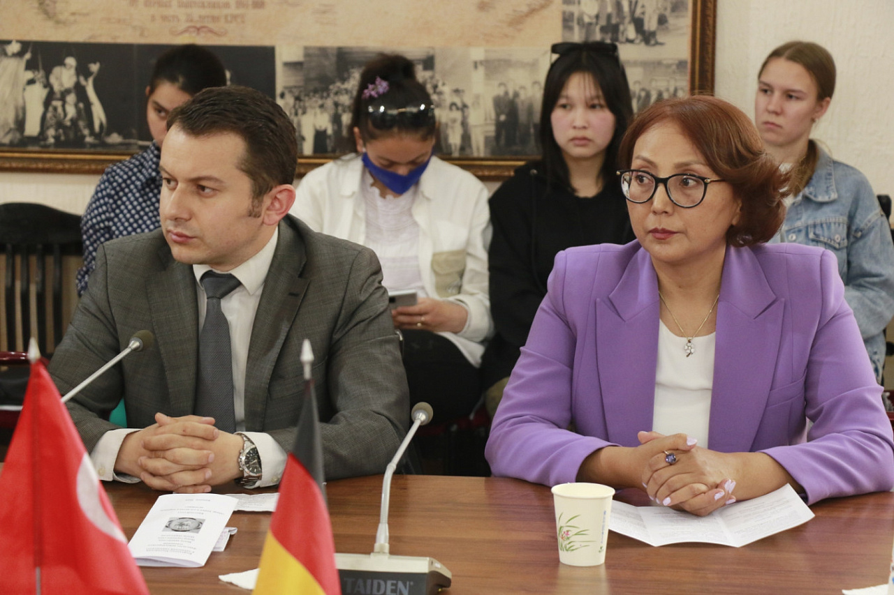 В мероприятии, модератором которого выступил директор Центра германистики КРСУ А. Мальчик, приняли участие директор культурного представительства Ирана в Бишкеке Абузар Тугани, директор турецкого образовательного центра TTEOMER Мустафа Булут, декан ФМО А. Куликовский, доцент М. Мухарова, директор Центра иранистики М. Мамедова, директор Центра тюркологии Э. Осмонова, преподаватели и студенты КРСУ.
