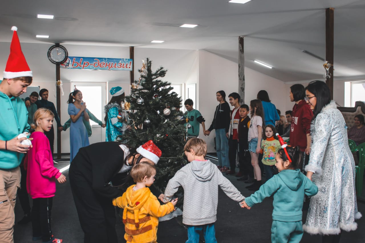 26 декабря, в канун Нового года, состоялась поездка в Сосновский семейный детский дом. Студенты-психологи КРСУ 1-2 курсов очень хотели поздравить воспитанников детского дома с Новым годом, показать представление, вручить детям подарки. Для этого был написан сценарий праздника, закуплены подарки, и вот, наконец, мы оказались вдали от города, в этом чудесном, красивейшем месте – в горном урочище рядом с бурными водоворотами реки Карабалтинки. Красоты природы, солнце, чистый, прозрачный воздух для нас, привыкших дышать городским смогом, показались поистине раем на земле!