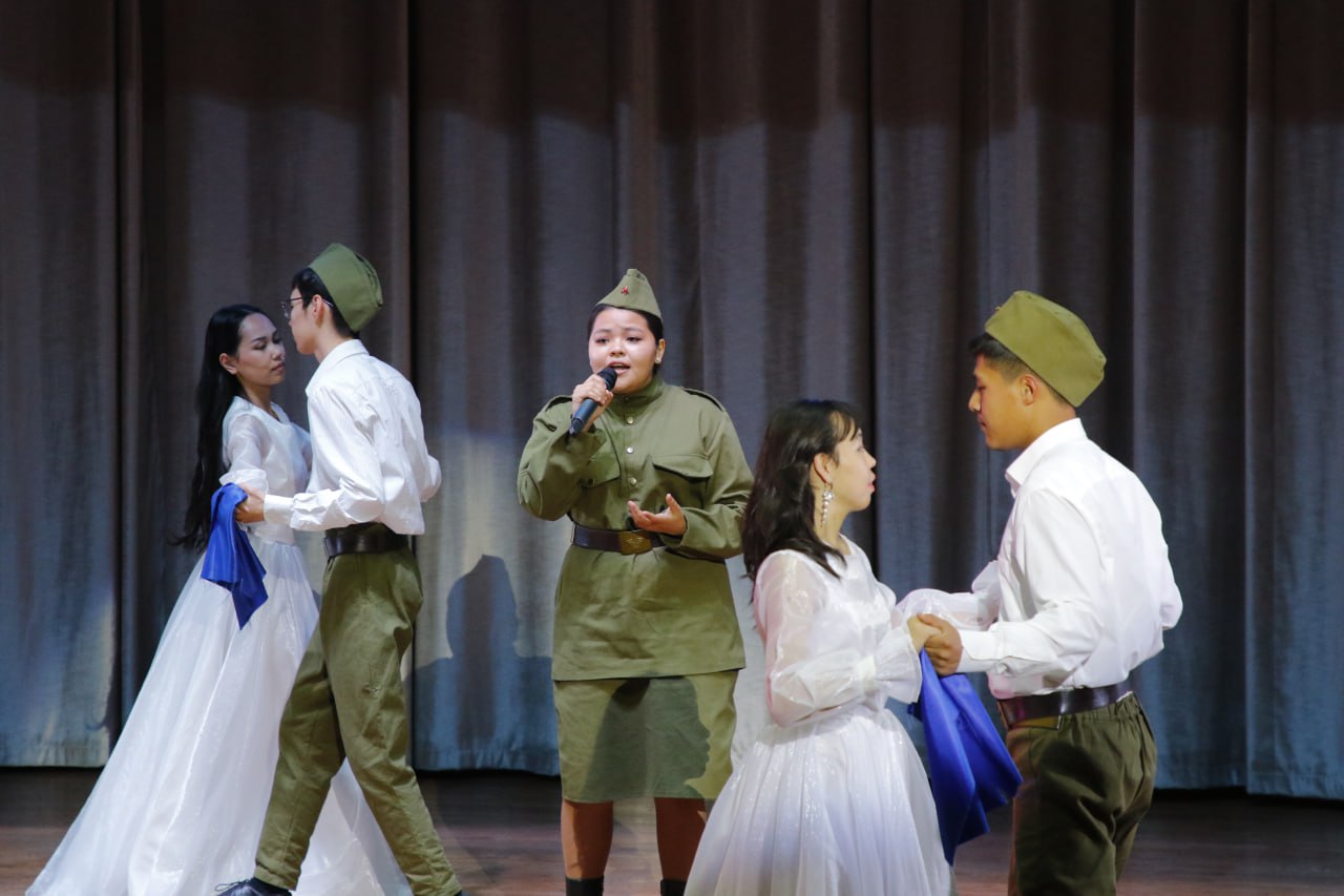 Мероприятие собрало талантливую молодежь, которая через свои номера выразила уважение и благодарность героям тех лет. На сцене прозвучали проникновенные песни, были показаны театрализованные сценки и яркие танцевальные выступления. Особую атмосферу фестивалю придало то, что номера исполнялись не только на русском языке, но и на английском и китайском, что подчеркивает многонациональный дух и культурное разнообразие нашего времени.